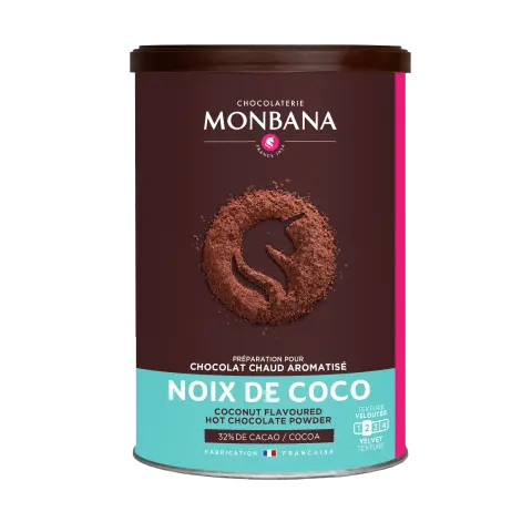 MONBANA kókuszos forró csokoládé – egy különleges, selymesen krémes ital, ahol a klasszikus csokoládé íze találkozik a lágy kókusz aromájával. Ez az ital nem csak finom, de egy kis trópusi hangulatot is varázsol a mindennapokba.