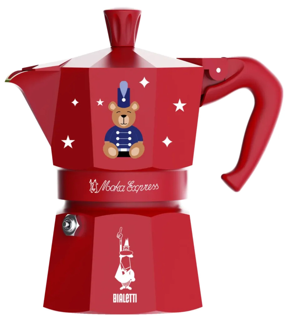 Piros színű, ünnepi kiadású (Special Edition) Bialetti Moka kávéfőző, amely egyszerre 3 adag kávét készít. Kiváló választás karácsonyi ajándéknak.